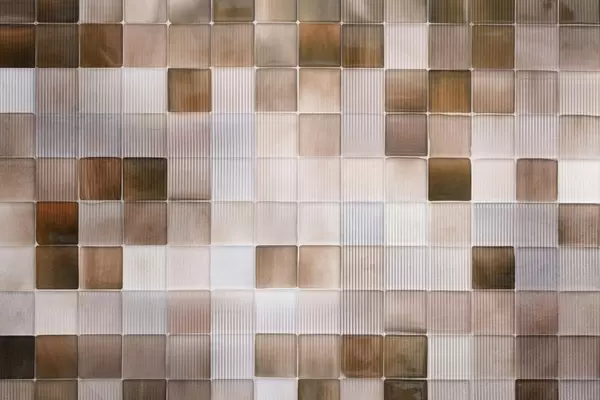 Murais de parede Ladrilhos quadrados de mosaico de pedra em tons de marrom, bege e branco com uma textura abstrata de ruído granulado e canelado Nr. w09269