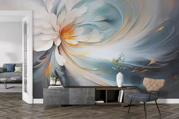 Murais de parede Flor abstrata em tons suaves de azul e laranja Nr. w09270