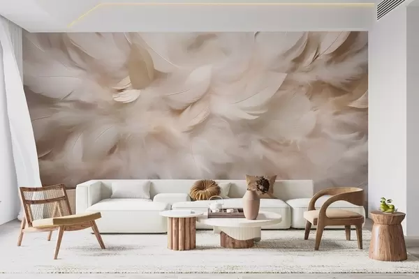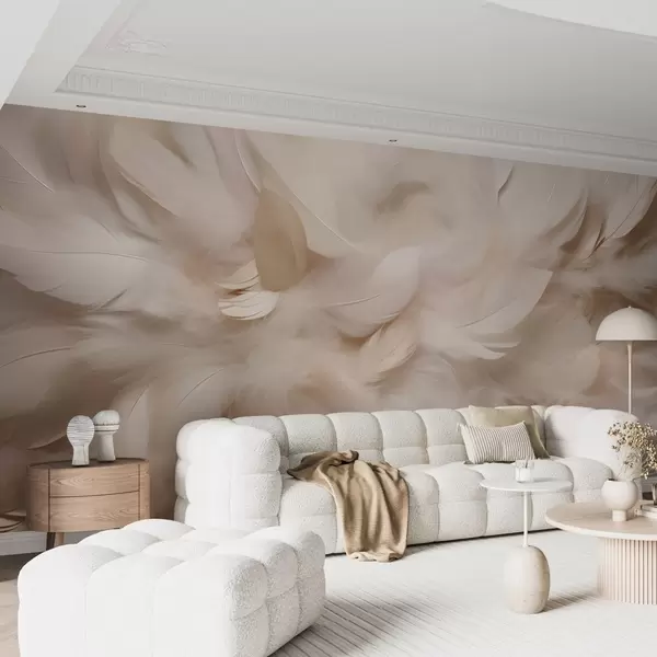 Murais de parede Penas fofas e penugem em tons cremosos Nr. w09274
