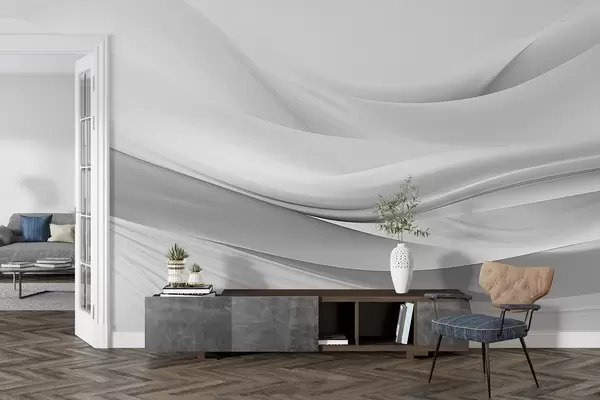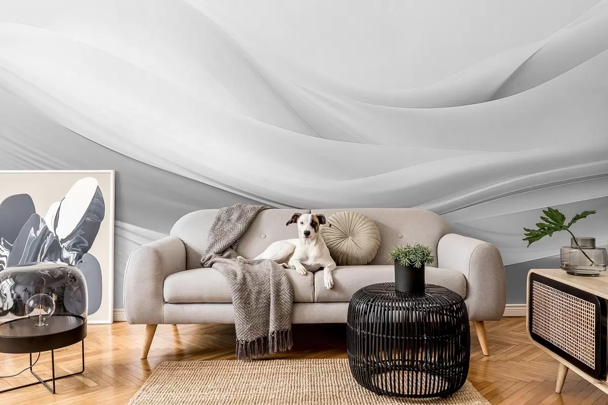 Murais de parede Ondas de tecido cinza em estilo abstrato minimalista Nr. w09279v1
