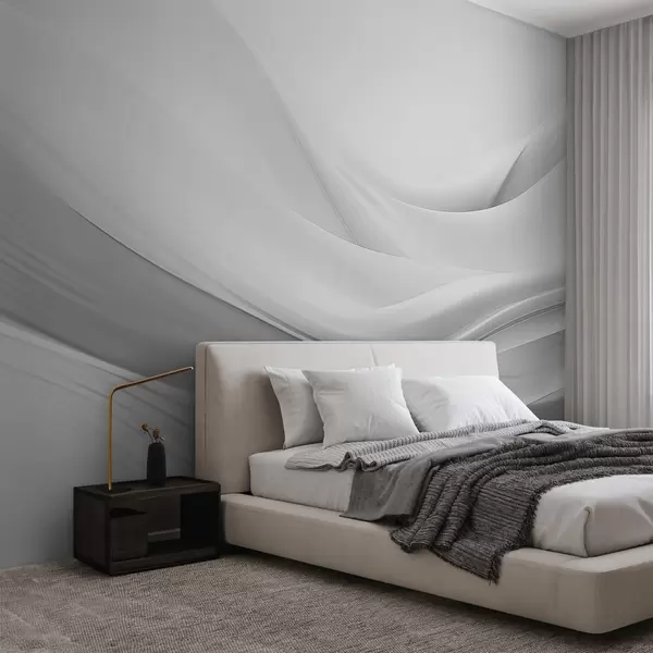 Murais de parede Ondas de tecido cinza em estilo abstrato minimalista Nr. w09279v1