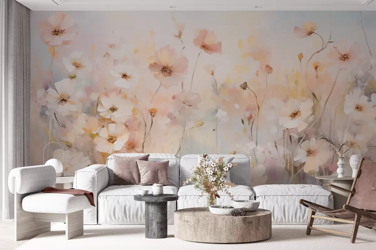 murais de parede Flores silvestres em tons pastéis em estilo aquarela w09280