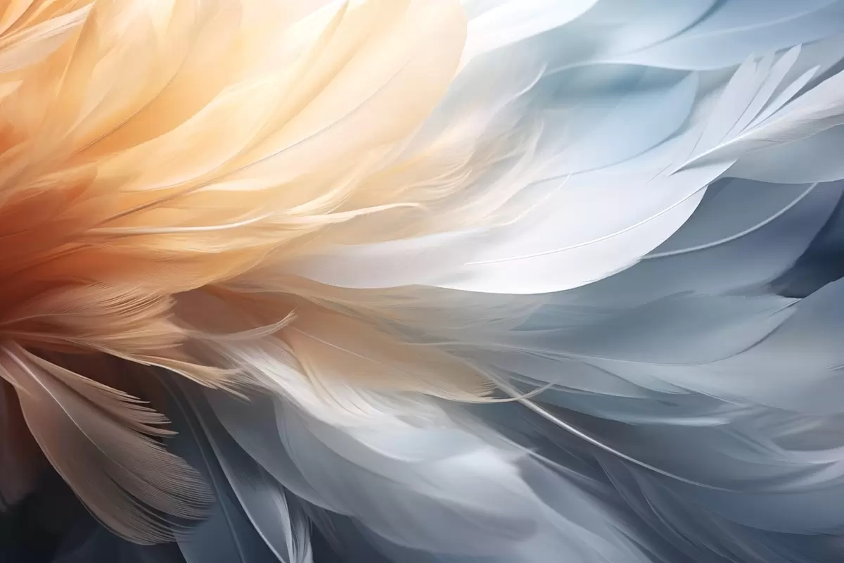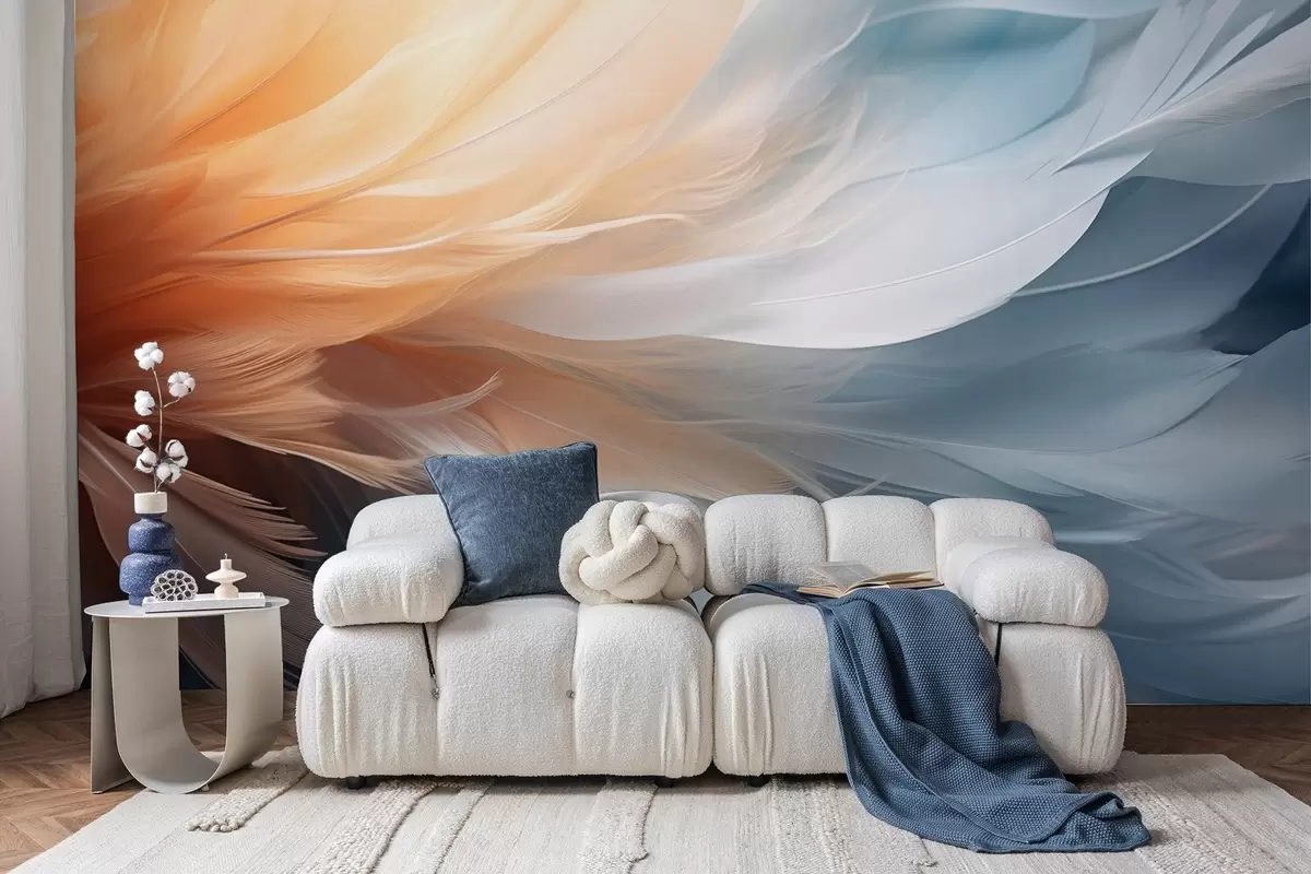 Murais de parede Penas delicadas em tons gradientes de laranja e azul Nr. w09282