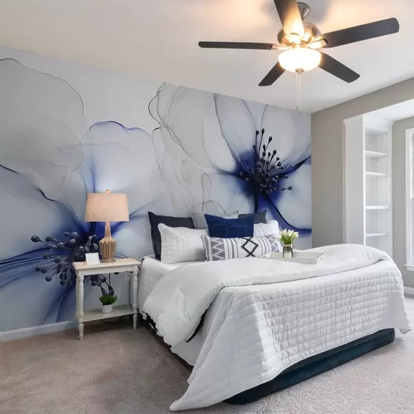 Murais de parede Duas flores azuis translúcidas texturizadas com estames visíveis, pétalas delicadas sobrepostas e uma textura suave e fluida Nr. w09295v1