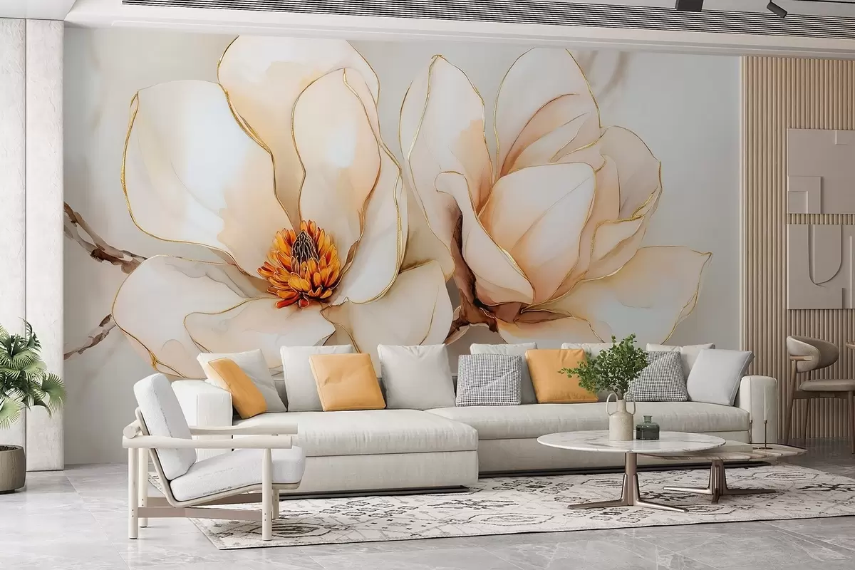 murais de parede Flores grandes de magnólia clara com pétalas macias w09308