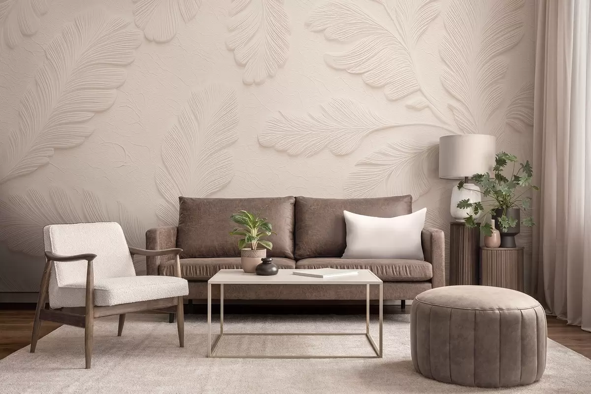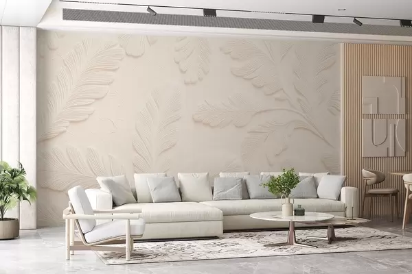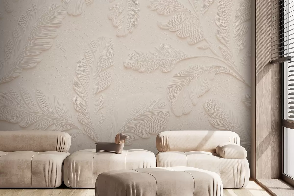 Murais de parede Folhas em relevo em um fundo claro com um efeito de rachadura Nr. w09309