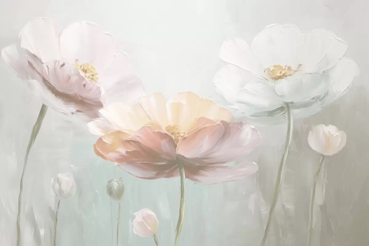 Murais de parede Papoulas volumétricas em pastel no estilo de pintura a óleo Nr. w09310v1