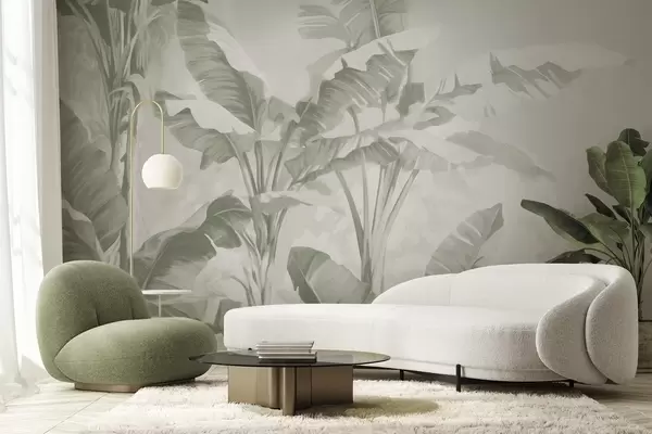 Murais de parede Folhas de bananeira tropical em suaves tons de verde Nr. w09311v1