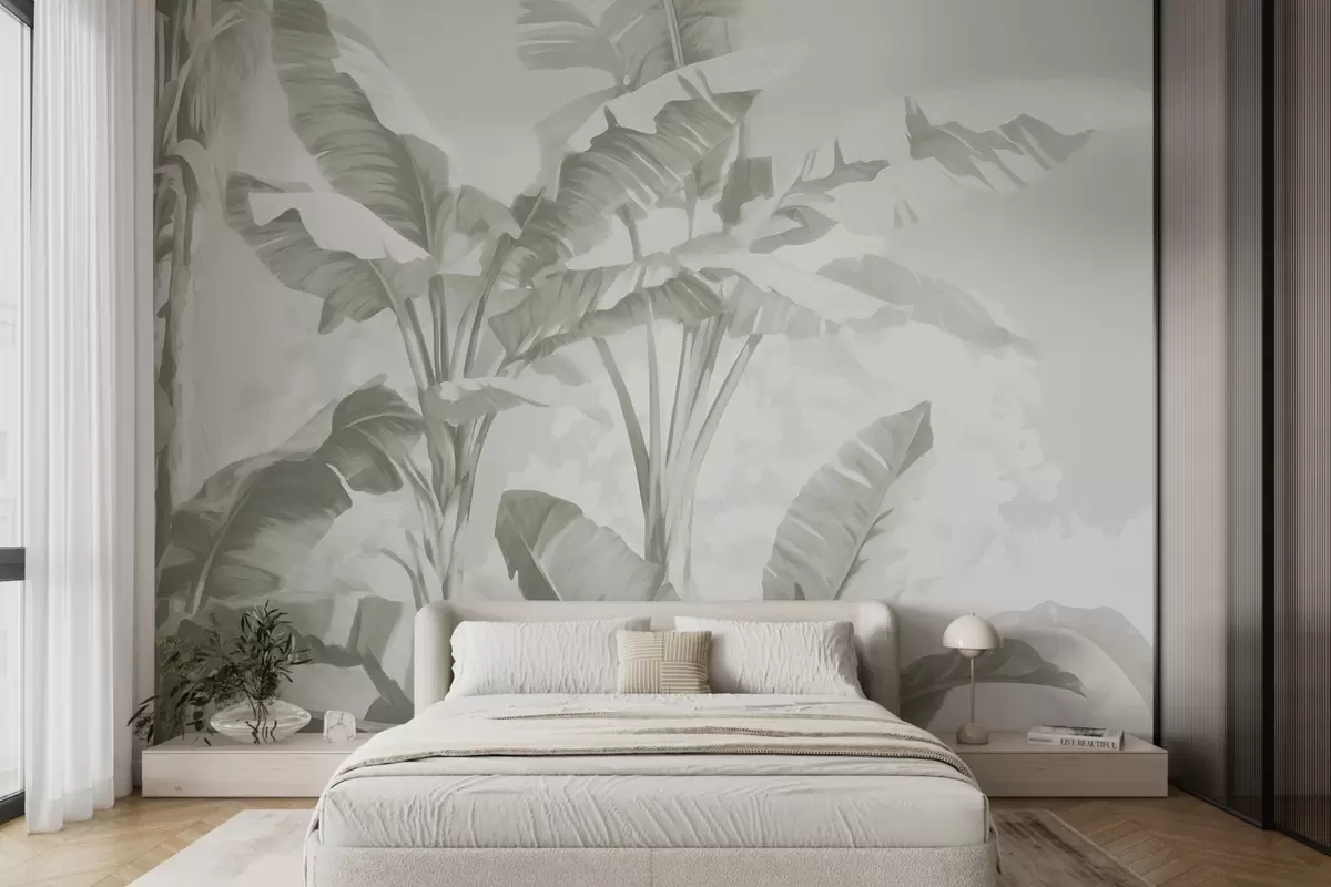 Murais de parede Folhas de bananeira tropical em suaves tons de verde Nr. w09311v1