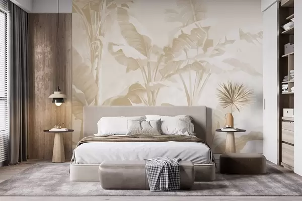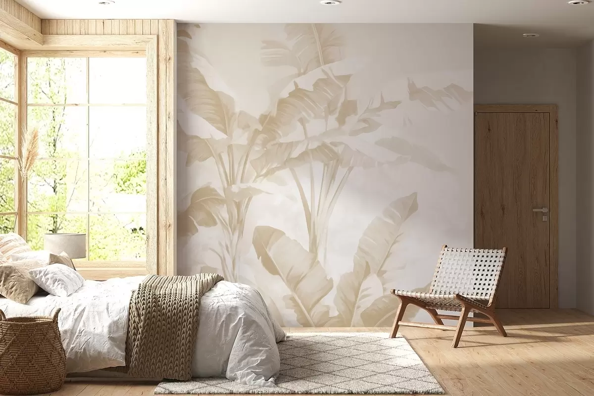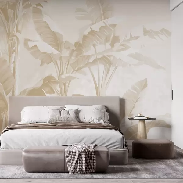 Murais de parede Folhas de bananeira tropical em tons suaves de bege Nr. w09311v2