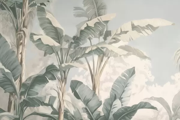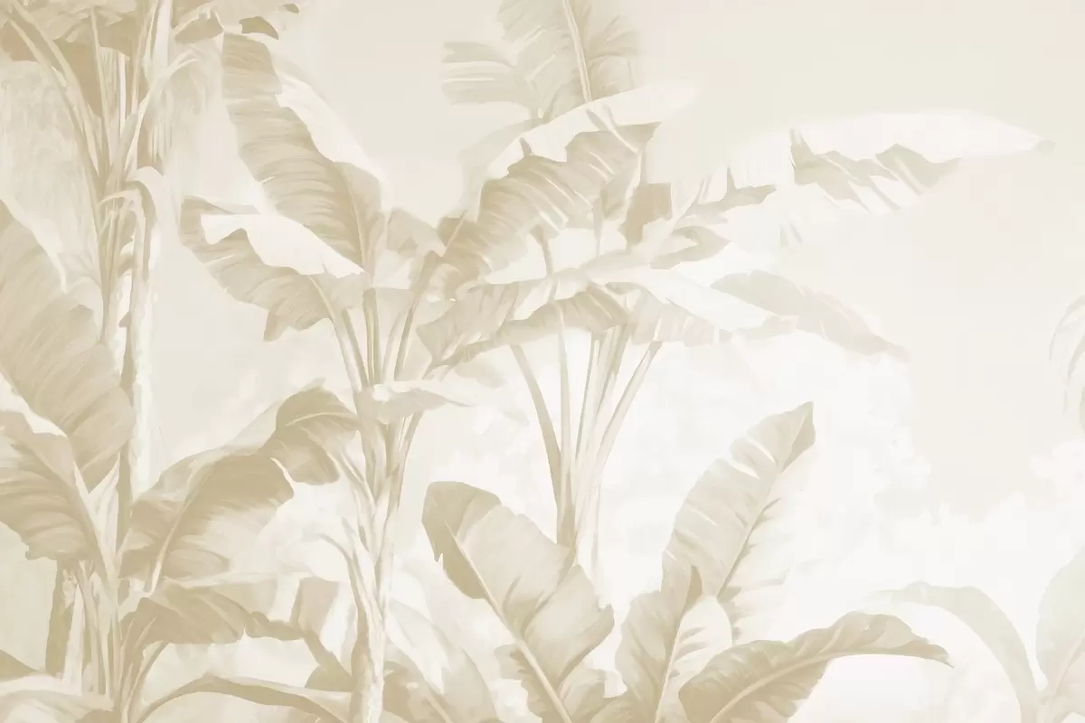 Murais de parede Folhas de bananeira tropical em tons suaves de bege Nr. w09311v2