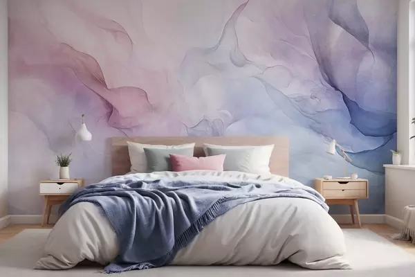 Murais de parede Pintura abstrata texturizada com tons pastéis fluidos de rosa, roxo e azul, criando um efeito suave Nr. w09318