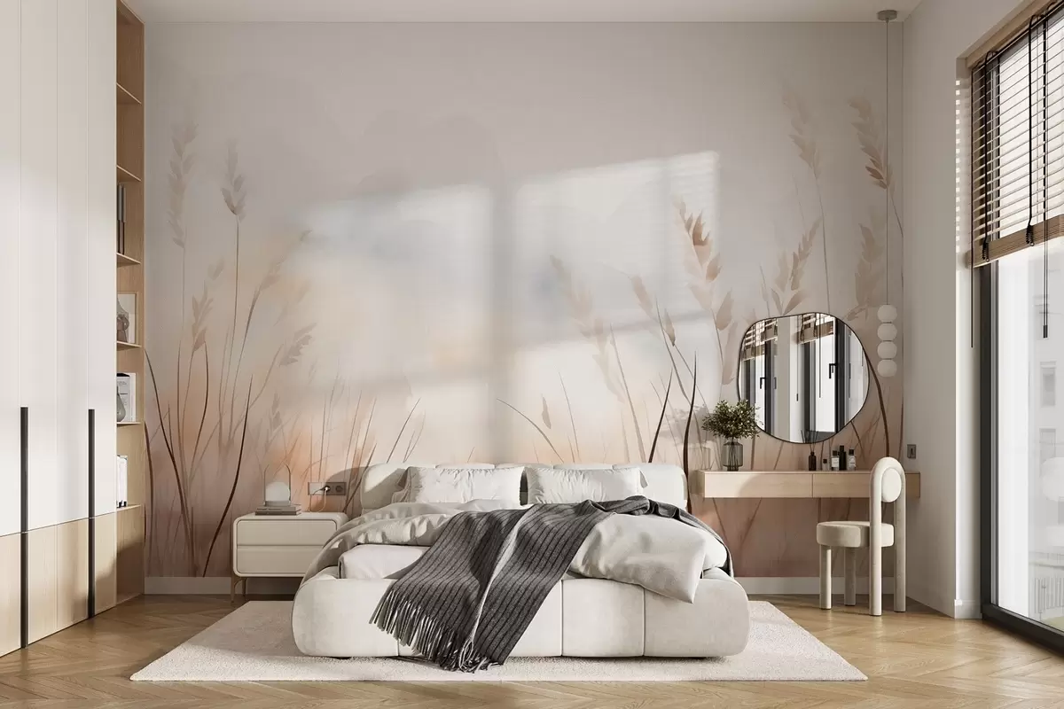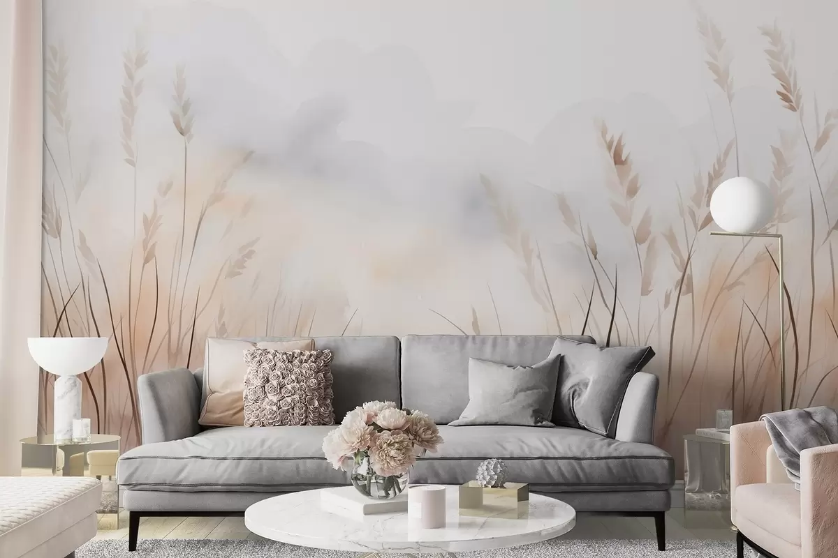 Murais de parede Orelhas de grão em névoa em tons suaves de bege e marrom Nr. w09327