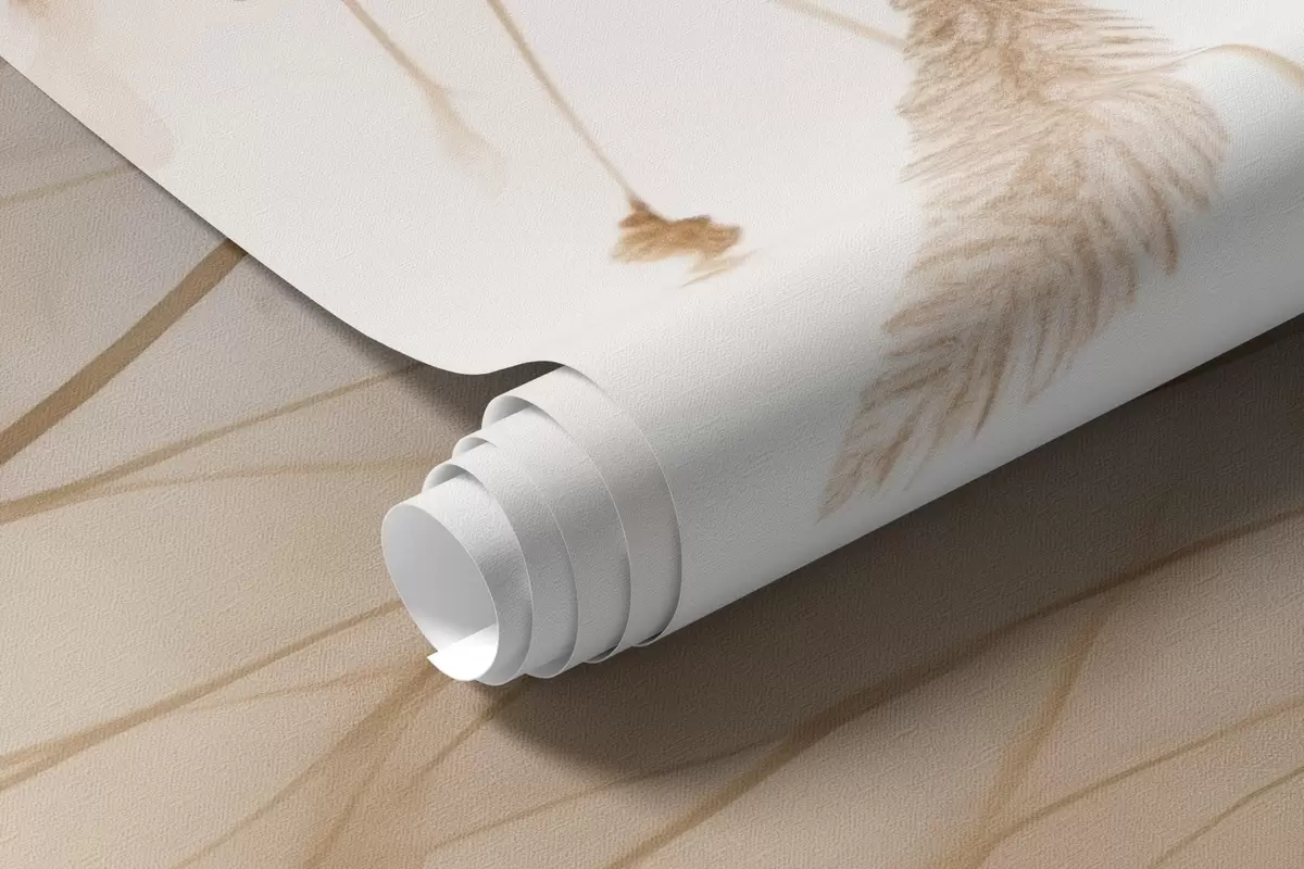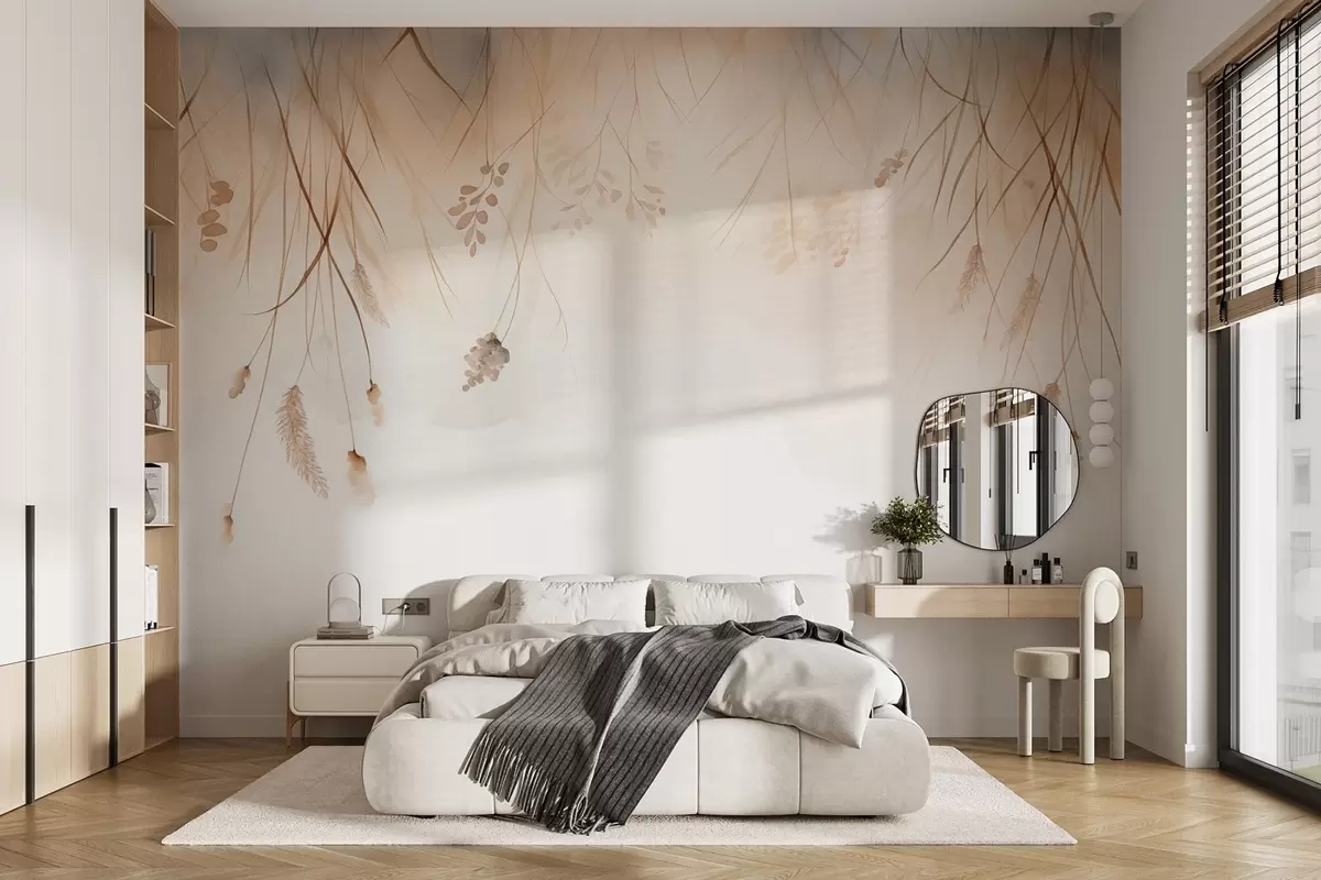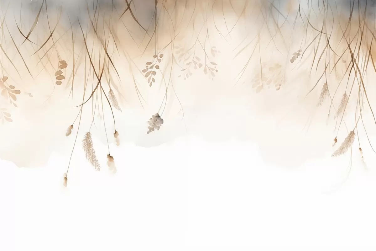 Murais de parede Taboas caídas e espigas de grãos na névoa em tons suaves de bege e marrom Nr. w09328
