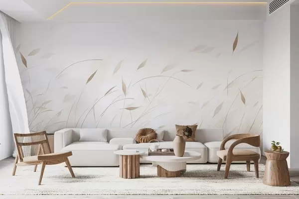 Murais de parede Grama ao vento em estilo aquarela em tons de bege Nr. w09331v1