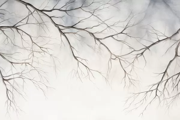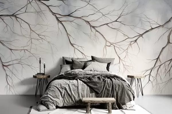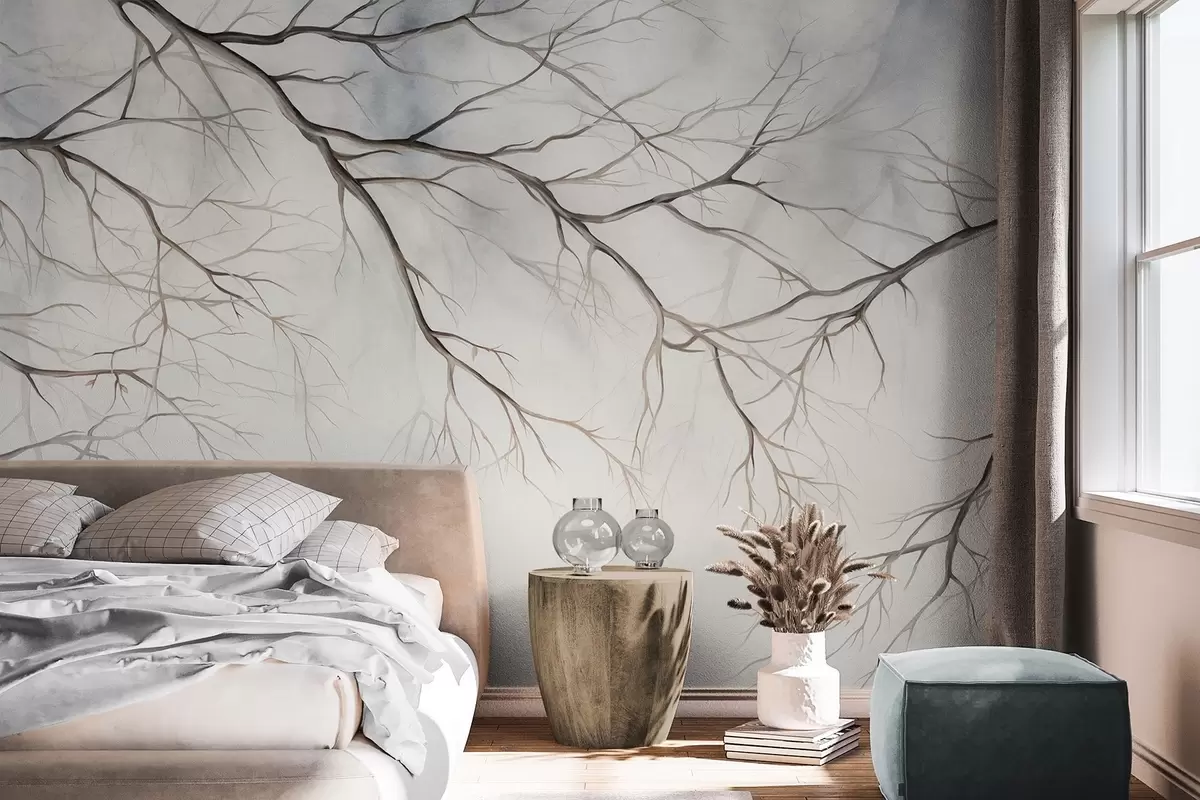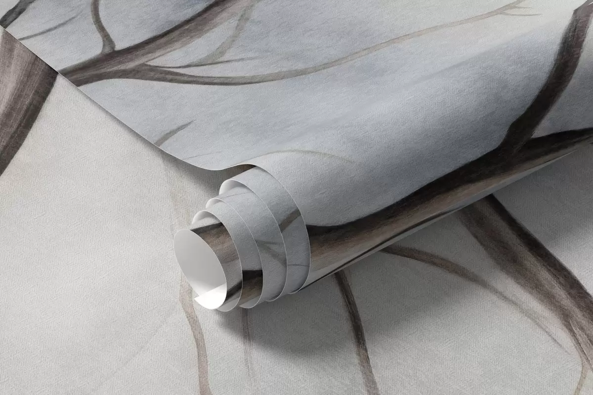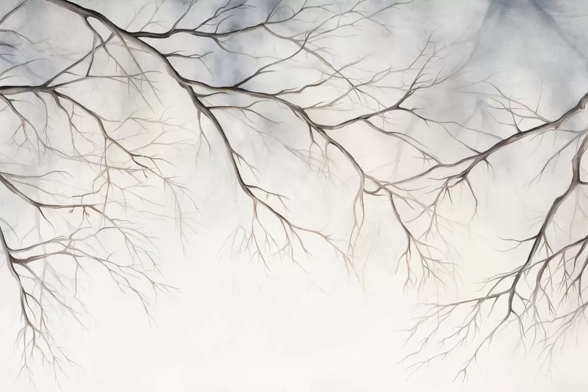 Murais de parede Galhos de árvores com efeito texturizado de aquarela, detalhes intrincados, paleta de cores suaves, contra um fundo claro Nr. w09337