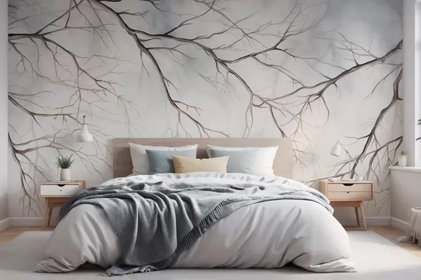 Murais de parede Galhos de árvores com efeito texturizado de aquarela, detalhes intrincados, paleta de cores suaves, contra um fundo claro Nr. w09337