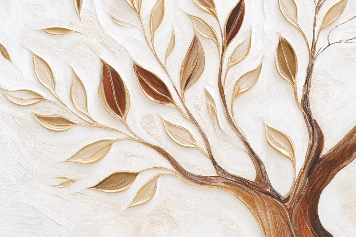 Murais de parede Árvore decorativa com folhas e imitação de um fundo texturizado Nr. w09349
