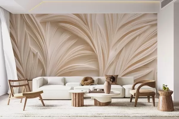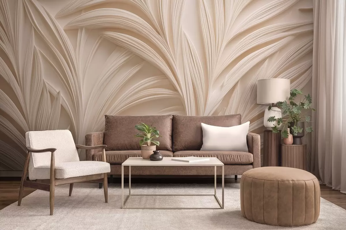 Murais de parede Folhas decorativas bege em estilo 3D Nr. w09351