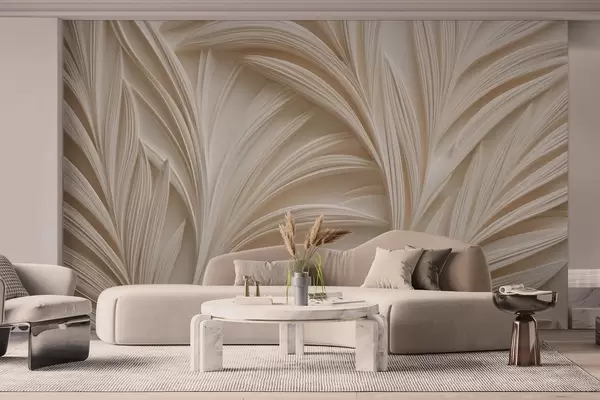 Murais de parede Folhas decorativas bege em estilo 3D Nr. w09351