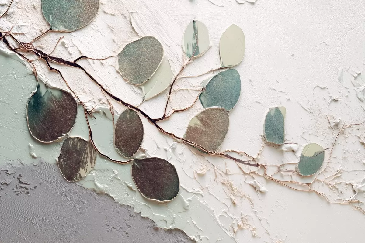 Murais de parede Árvore decorativa com folhas e imitação de um fundo texturizado Nr. w09357