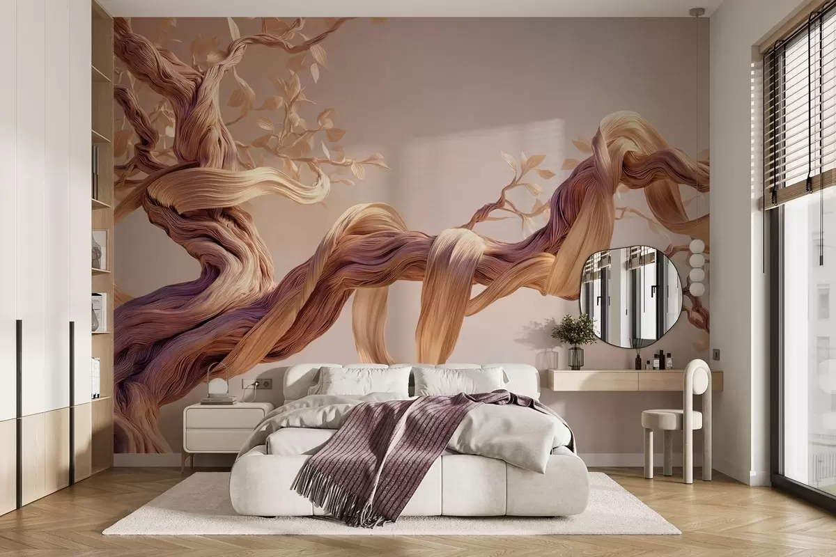 Murais de parede Tronco de árvore torcido com folhas decorativas Nr. w09360