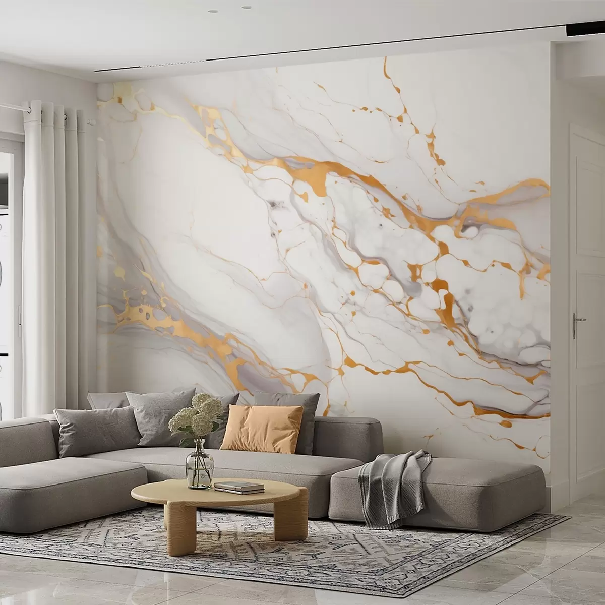 Murais de parede Imitação de textura de mármore com transições suaves de cinza e detalhes em amarelo Nr. w09362