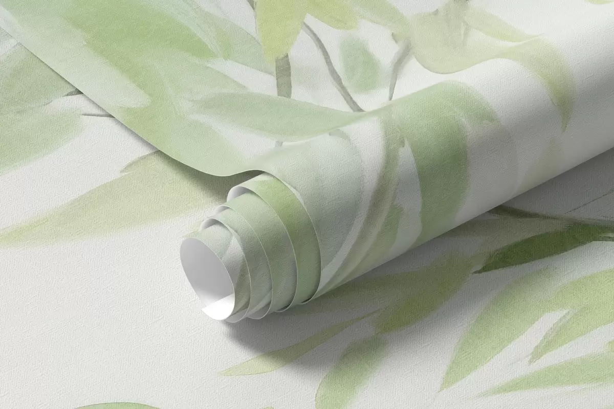 Murais de parede Ramos de salgueiro-chorão com folhas verdes penduradas, pinceladas suaves e delicadas, estilo de pintura em aquarela Nr. w09365