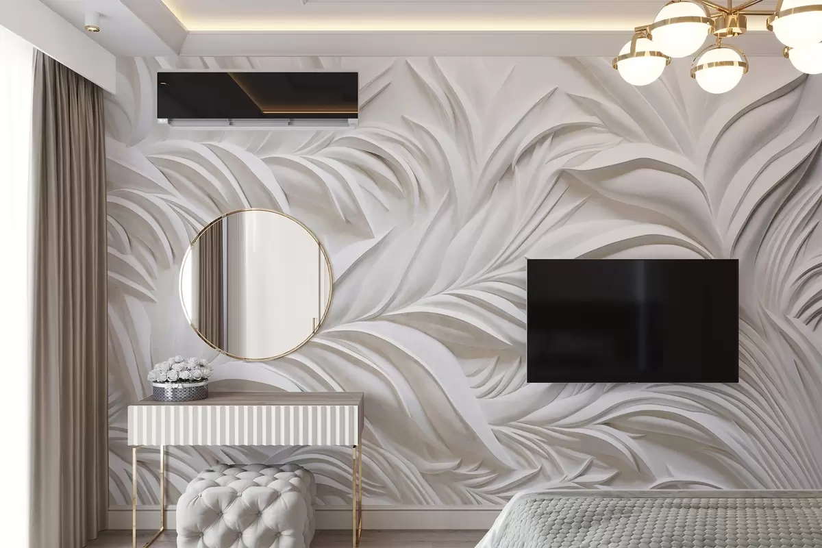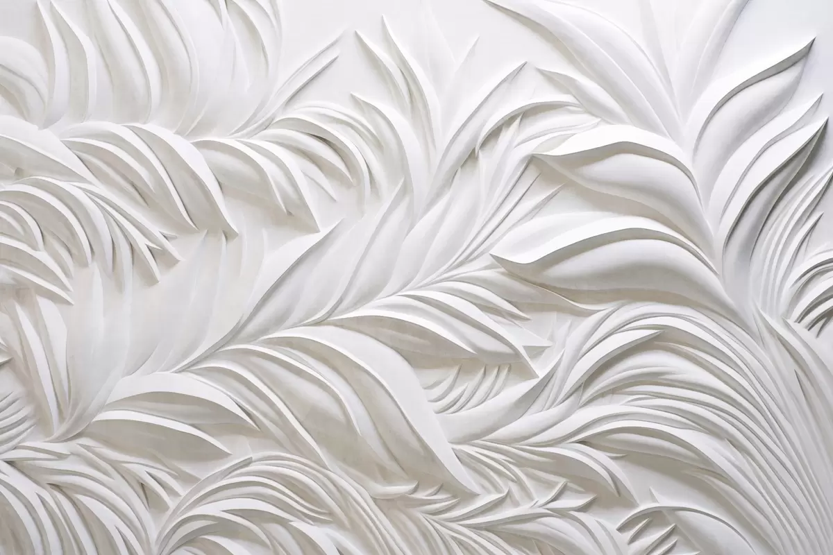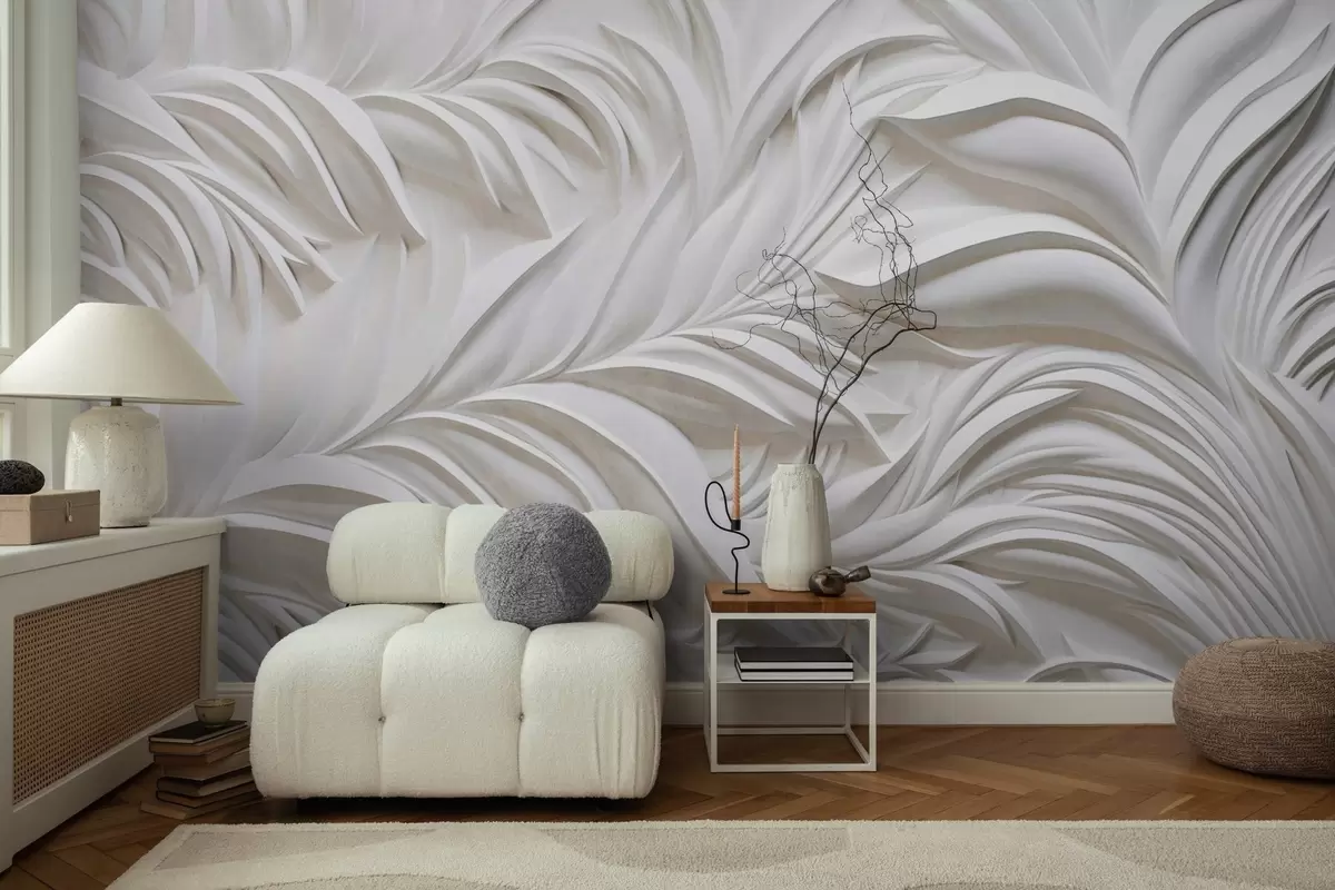 Murais de parede Folhas brancas texturizadas abstratas e elementos florais, estética minimalista Nr. w09378