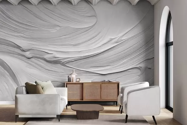 Murais de parede Imitacão de pinceladas abstratas de tinta branca texturizada com um padrão espiralado, composição moderna neutra e minimalista Nr. w09394