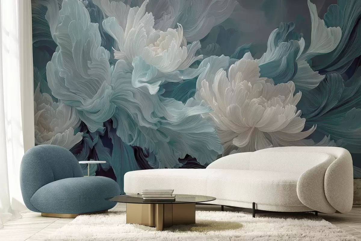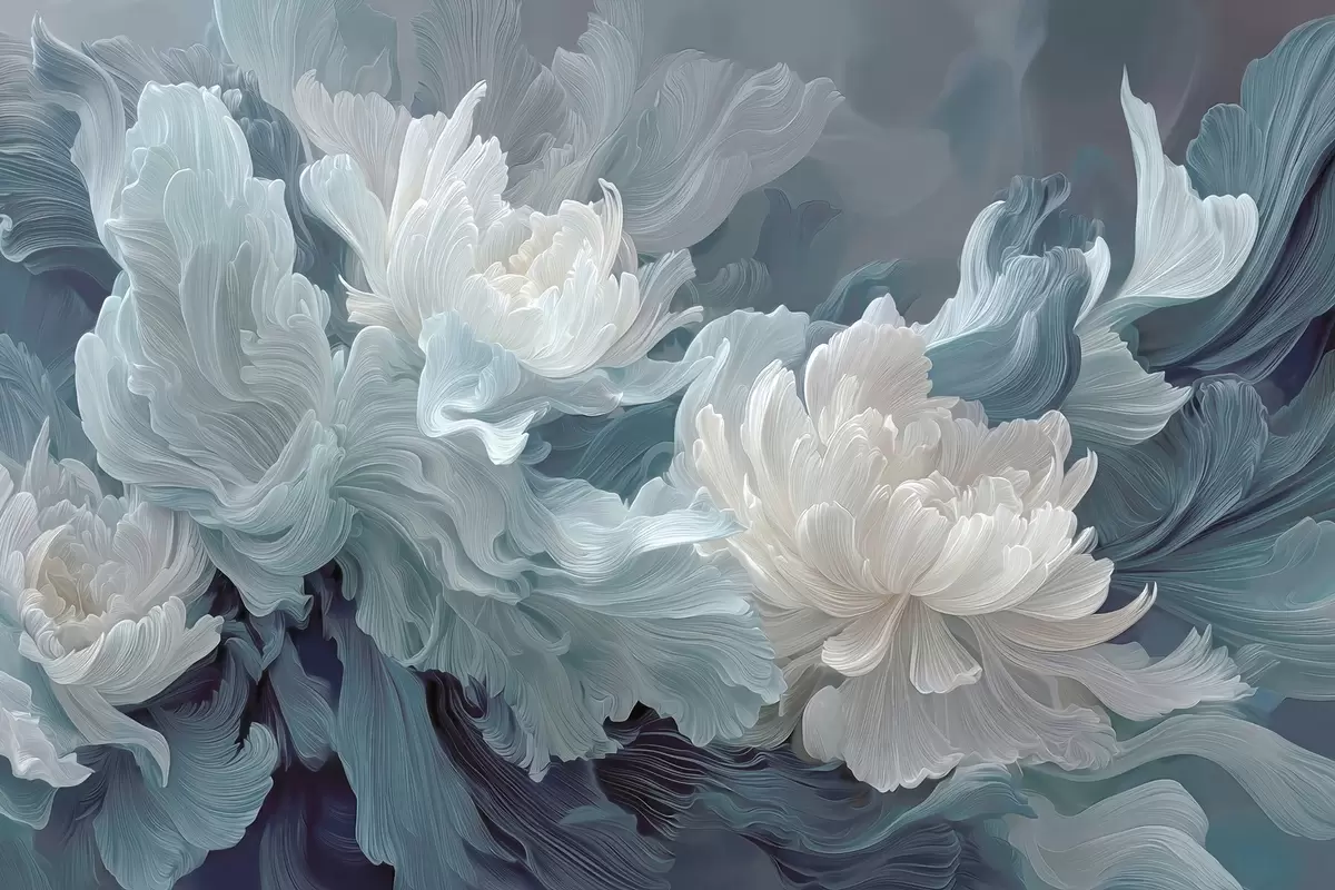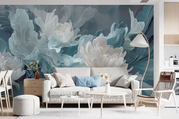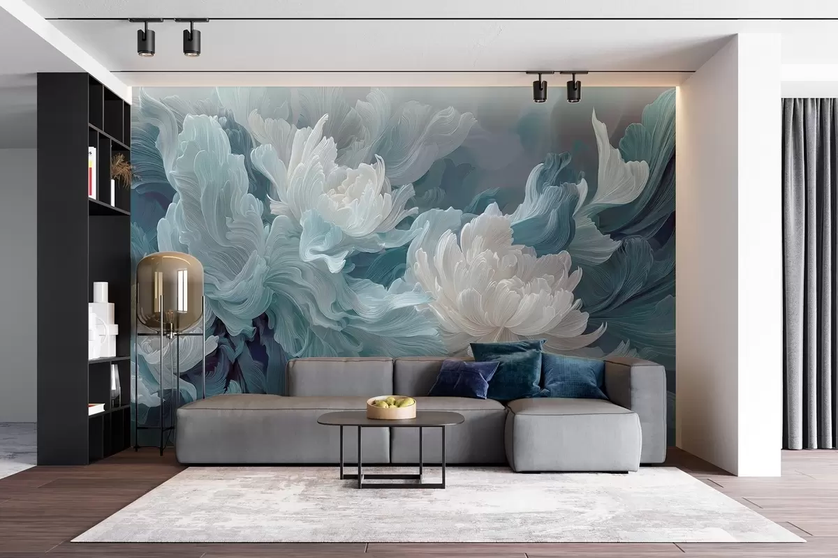 Murais de parede Flores abstratas em tons de azul e turquesa Nr. w09452