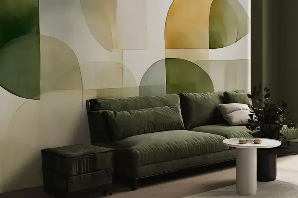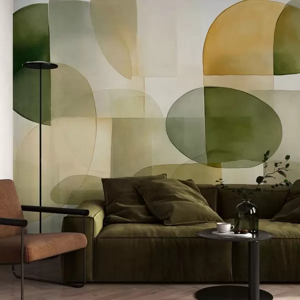 Murais de parede Formas abstratas texturizadas em tons de verde e amarelo, tons suaves, composição minimalista, fundo neutro Nr. w09467
