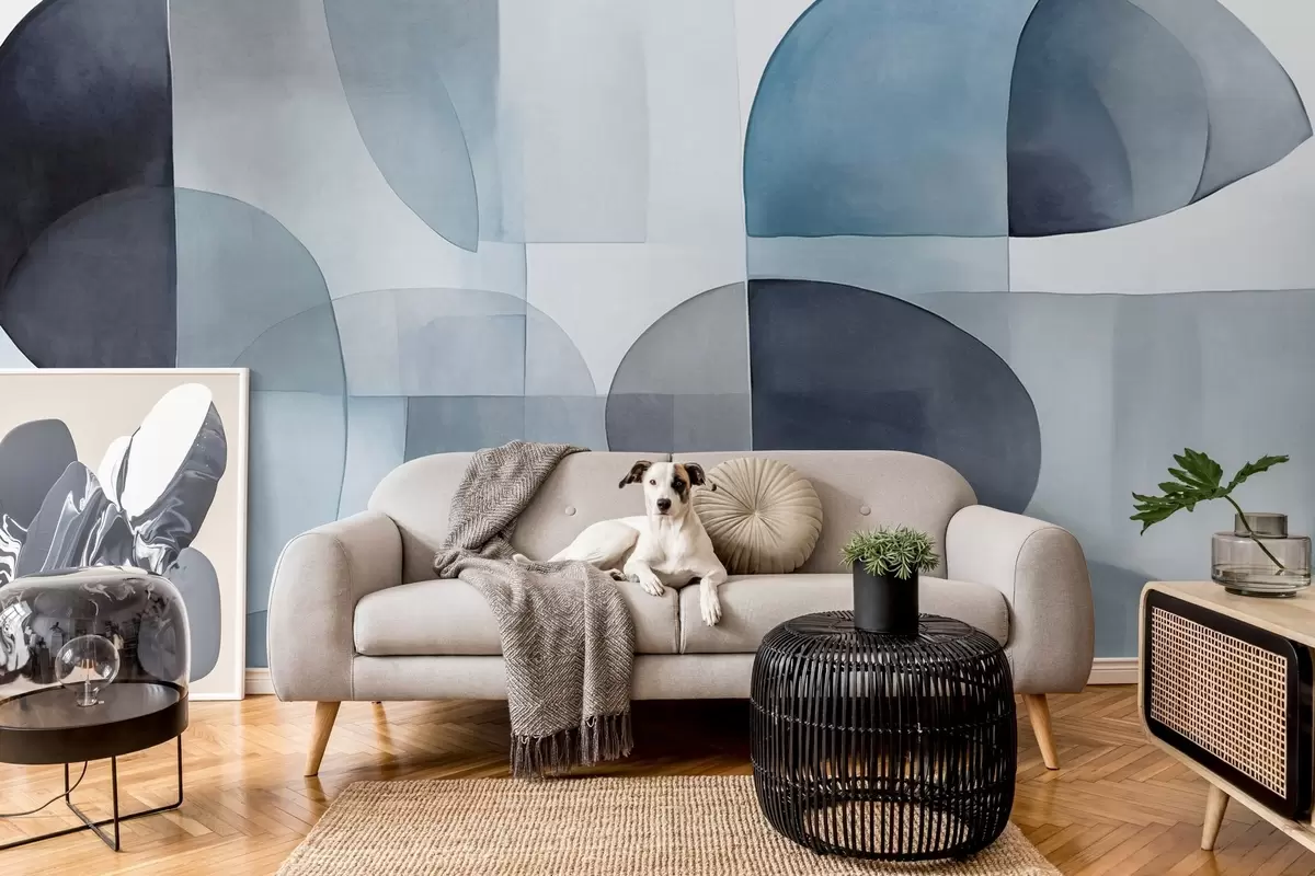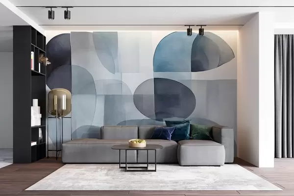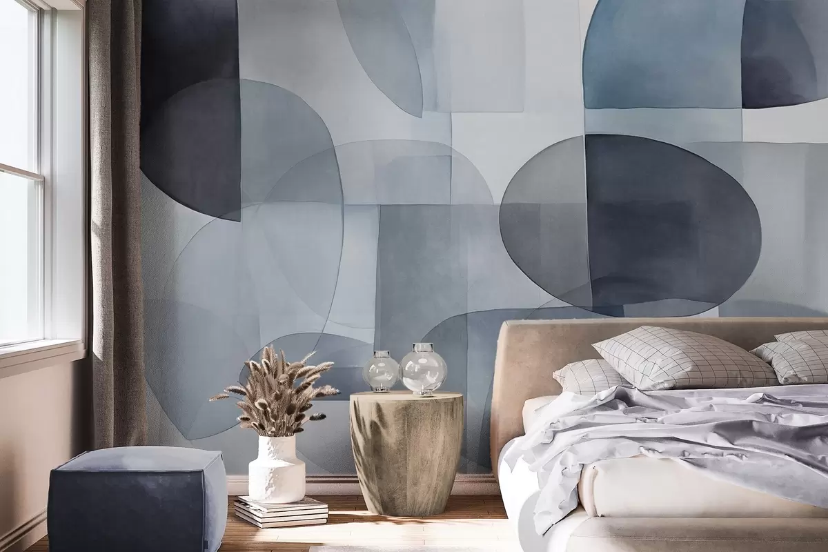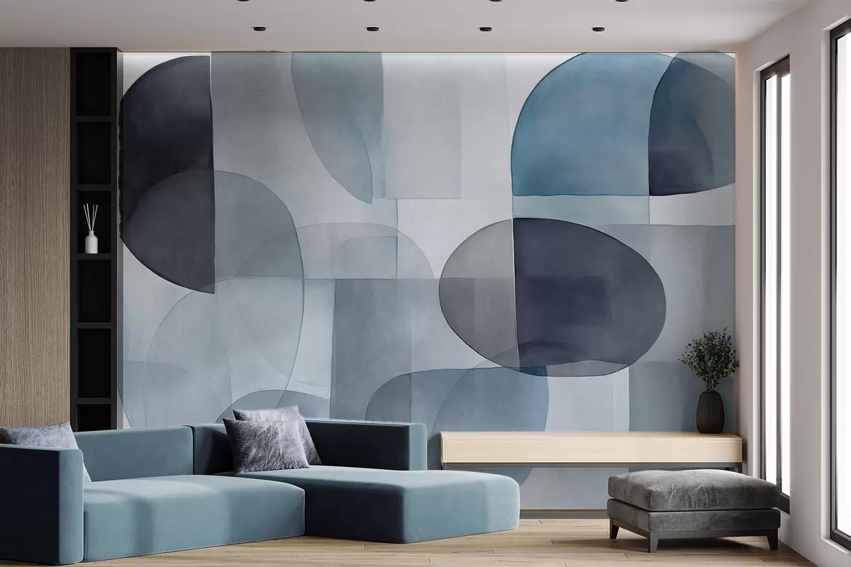 Murais de parede Formas abstratas texturizadas em tons de cinza e azul, tons suaves, composição minimalista, fundo neutro Nr. w09467v1