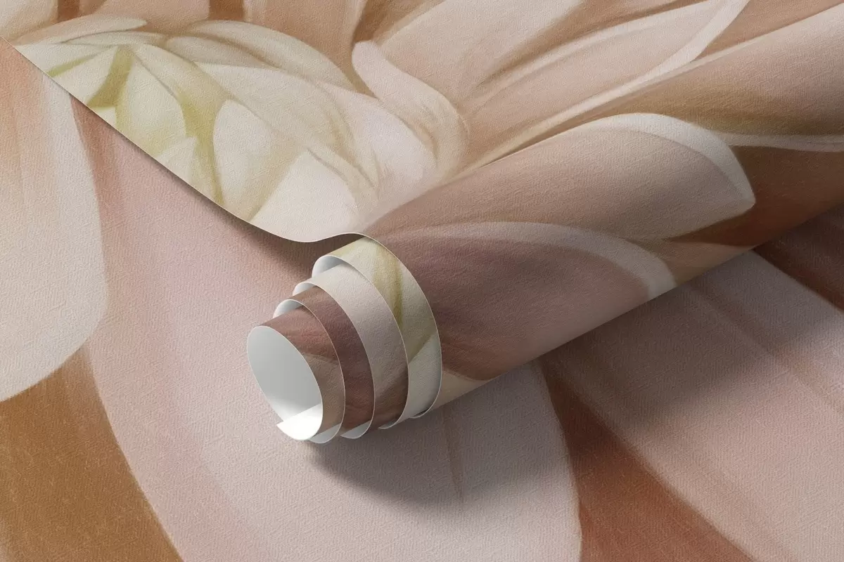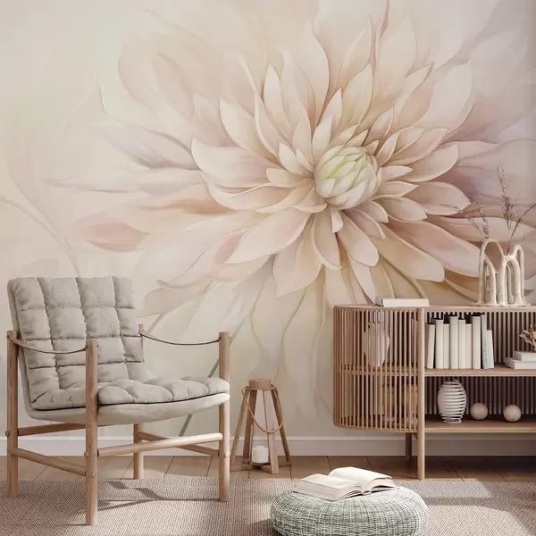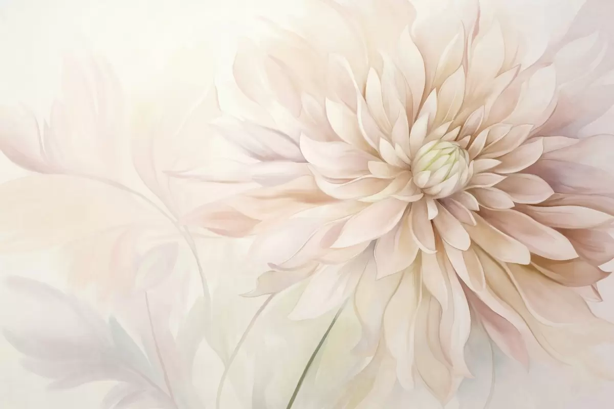 Murais de parede Uma flor de dália rosa claro com muitas pétalas, fundo pastel de textura suave com toques de verde e bege Nr. w09470