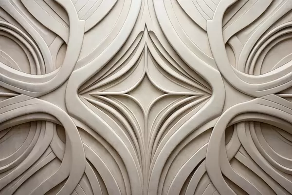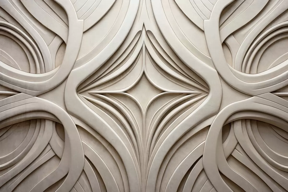 Murais de parede Estampa geométrica simétrica abstrata com textura, cor bege claro, estilo art déco, detalhes intricados Nr. w09473