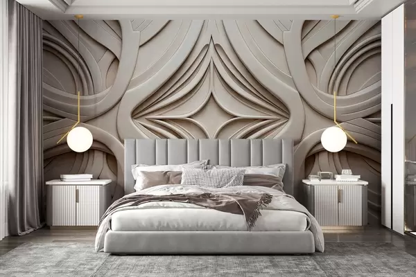 Murais de parede Estampa geométrica simétrica abstrata com textura, cor bege claro, estilo art déco, detalhes intricados Nr. w09473