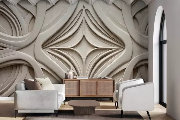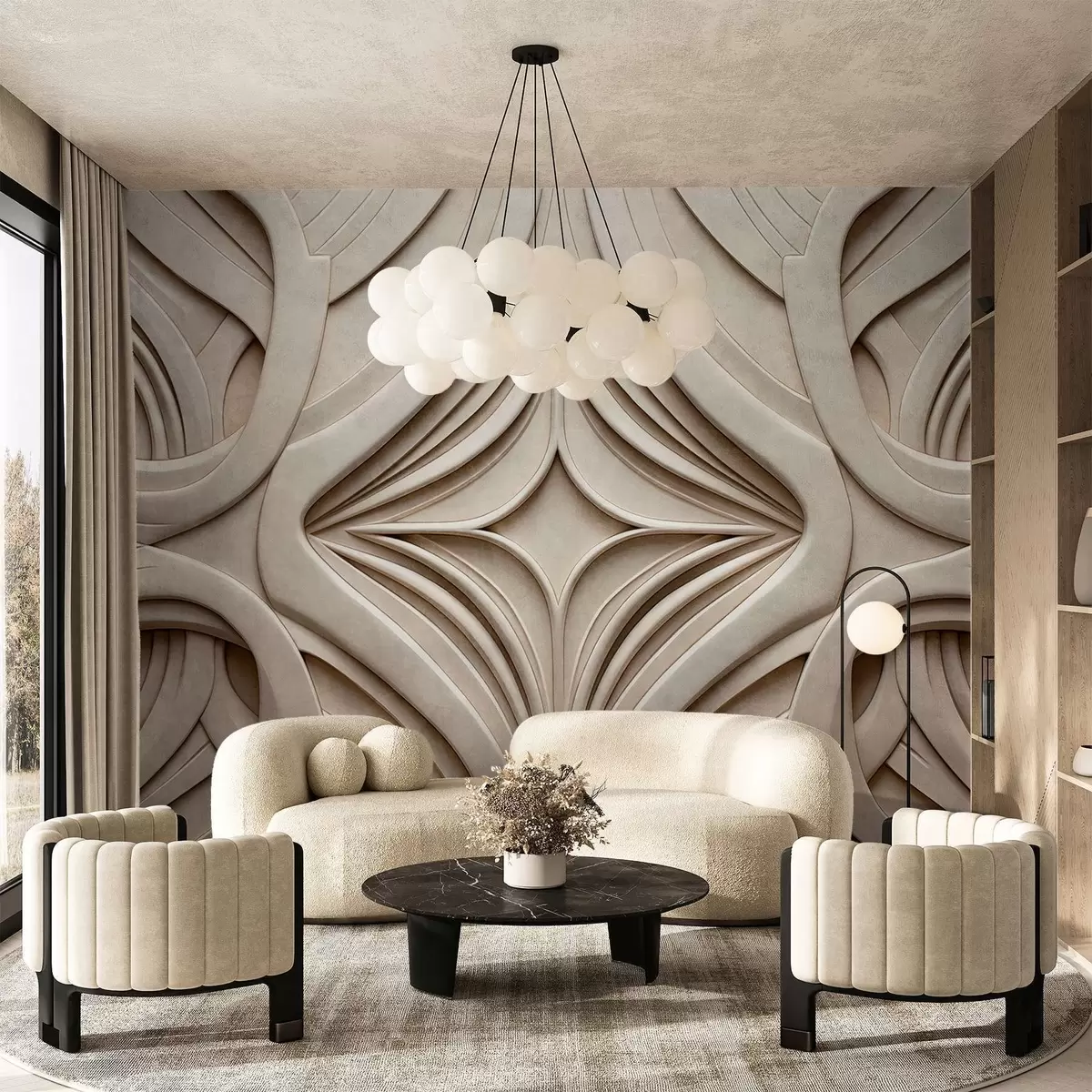 Murais de parede Estampa geométrica simétrica abstrata com textura, cor bege claro, estilo art déco, detalhes intricados Nr. w09473