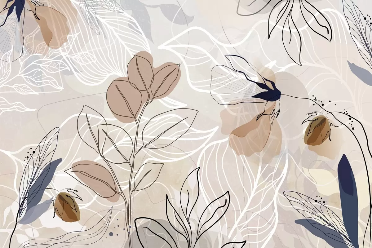 Murais de parede Fundo abstrato bege com folhas e flores em linha arte, moderno, minimalista, formas orgânicas, estampa botânica Nr. w09487