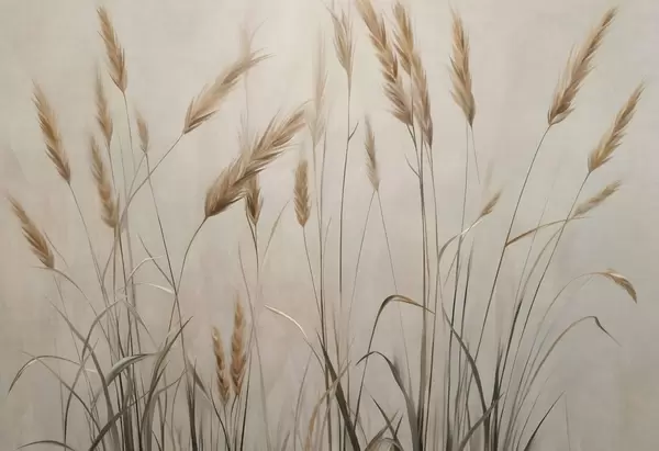 Murais de parede Campo com textura de trigo com espigas amarelas, fundo bege, iluminação natural, tons quentes, pinceladas detalhadas Nr. w09493