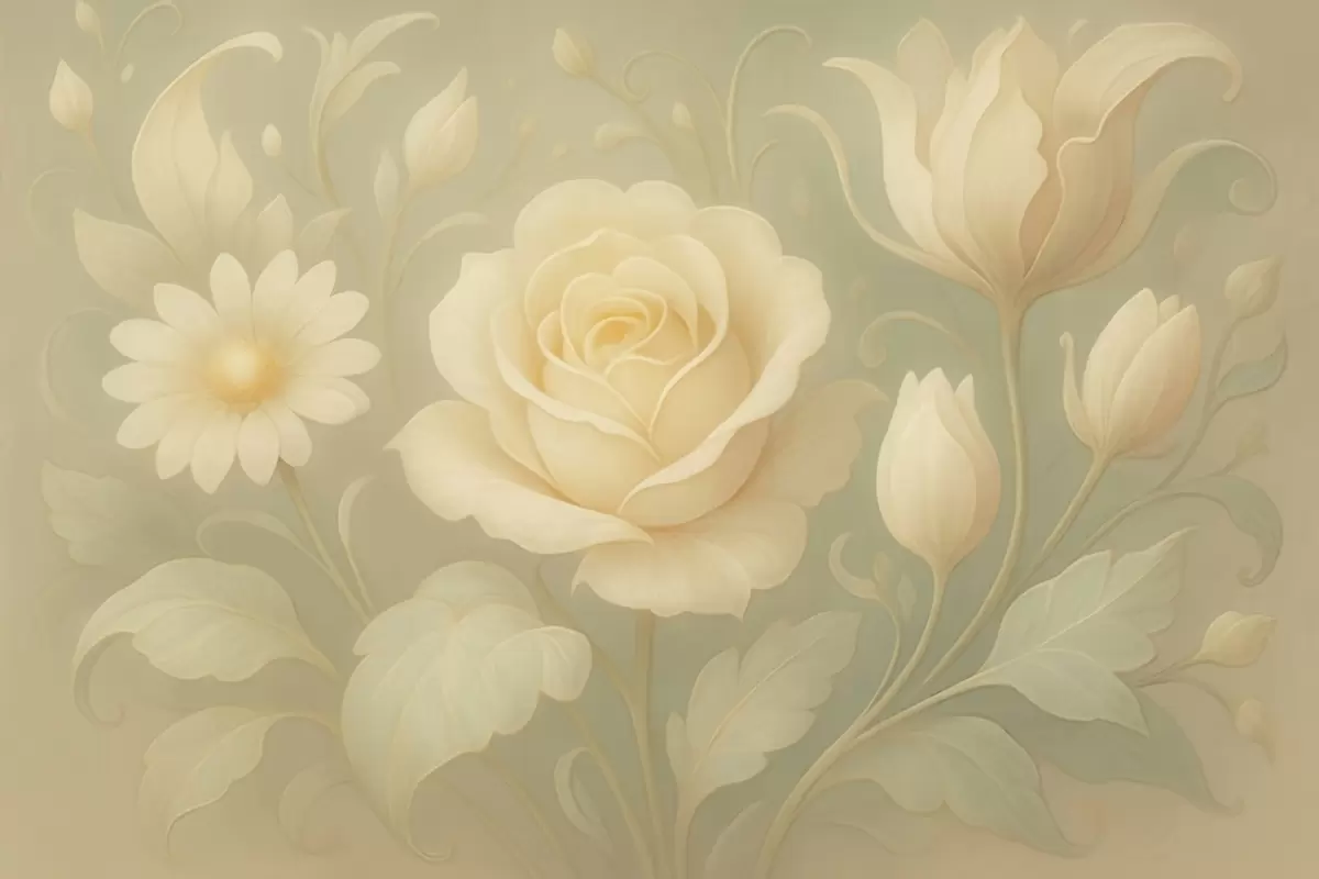 Murais de parede Delicada composição vintage com rosas bege sobre fundo verde claro Nr. w09499