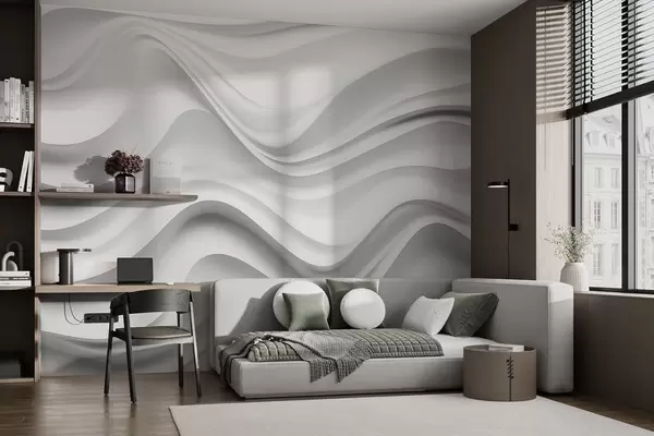 Murais de parede Composição 3D abstrata em preto e branco com ondas suaves Nr. w09506