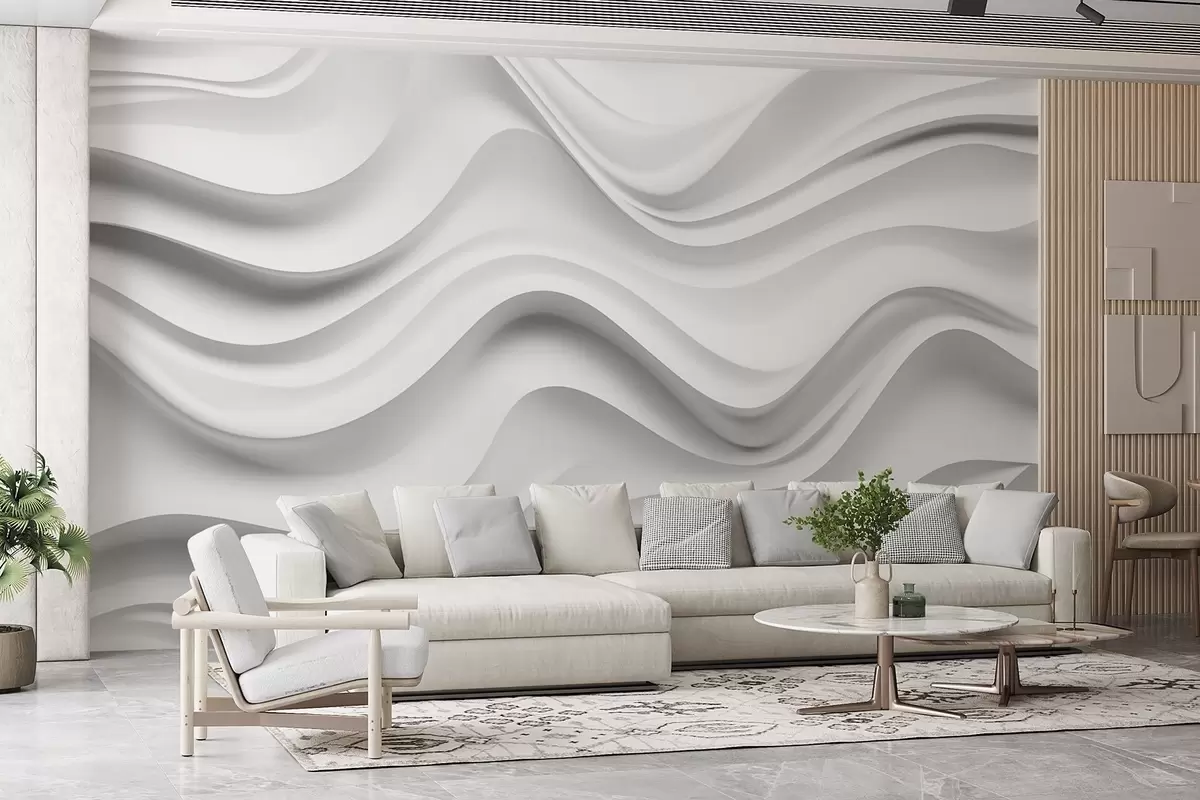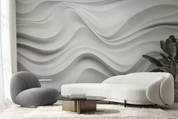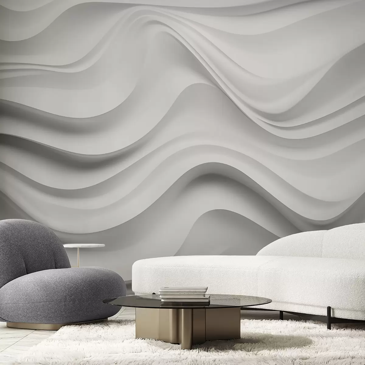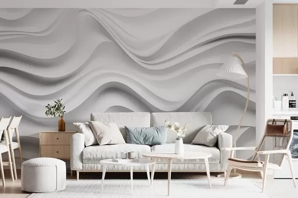 Murais de parede Composição 3D abstrata em preto e branco com ondas suaves Nr. w09506