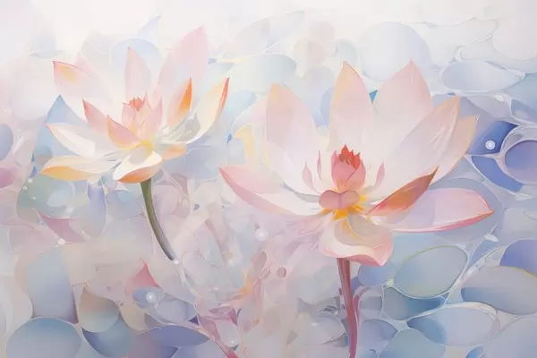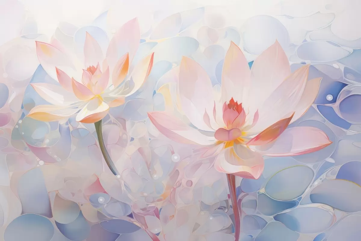 Murais de parede Flores de lótus em tons pastéis suaves, em estilo aquarela Nr. w09512