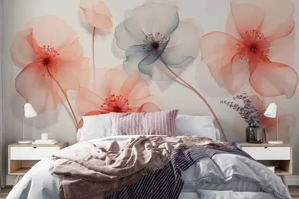 Murais de parede Flores translúcidas em tons de vermelho e azul Nr. w09515