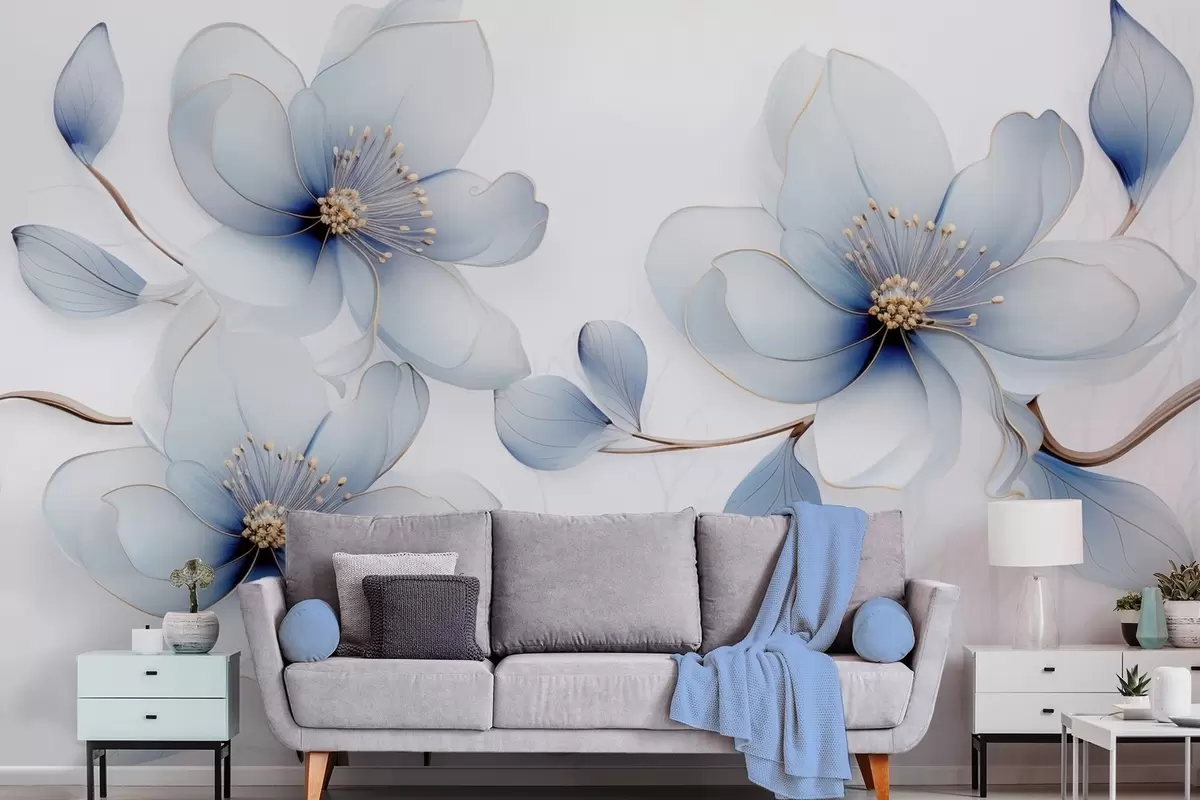 Murais de parede Elegante composição floral de magnólia em tons de azul Nr. w09520