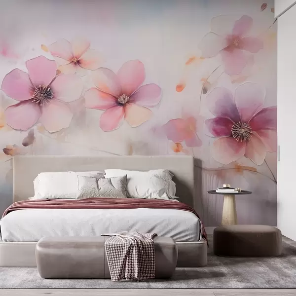 Murais de parede Ramo com flores cor-de-rosa em estilo aquarela Nr. w09522