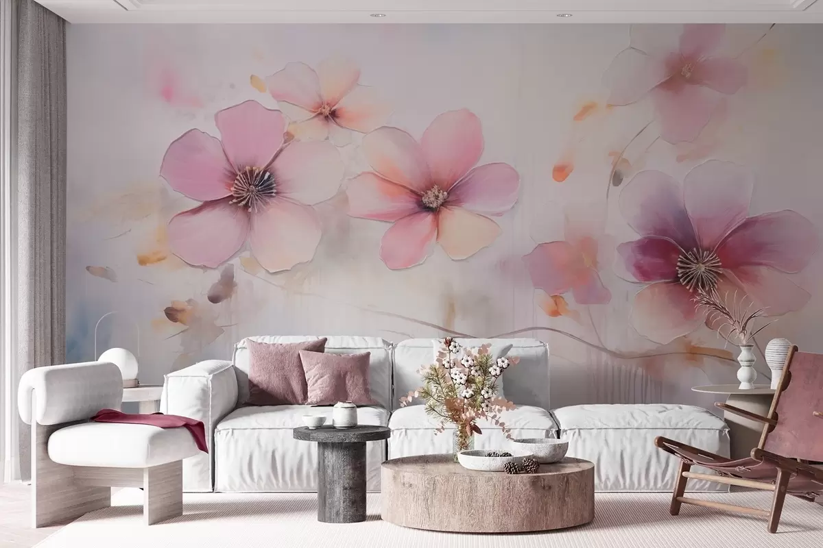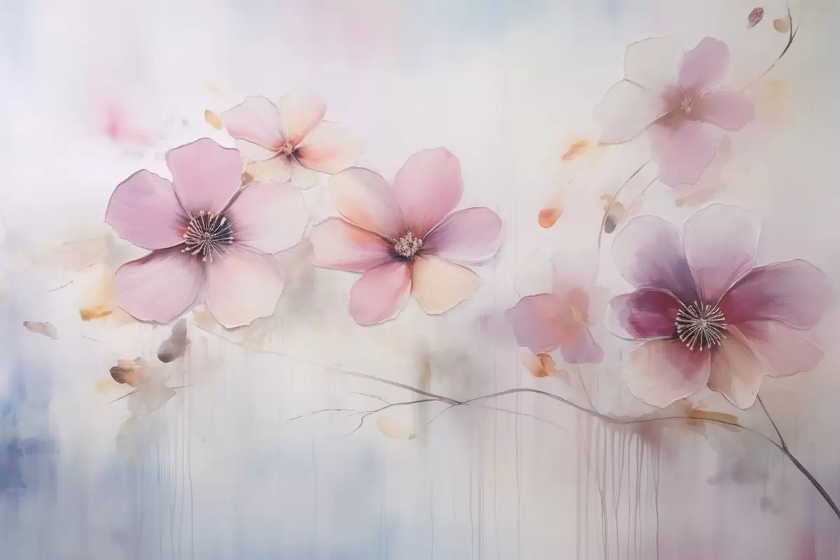 Murais de parede Ramo com flores cor-de-rosa em estilo aquarela Nr. w09522