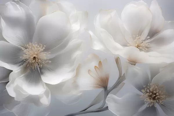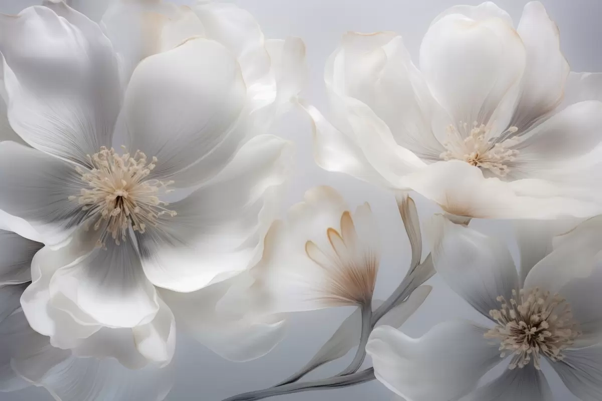 Murais de parede Flores peroladas em tons de bege-cinza e creme-leitoso Nr. w09527