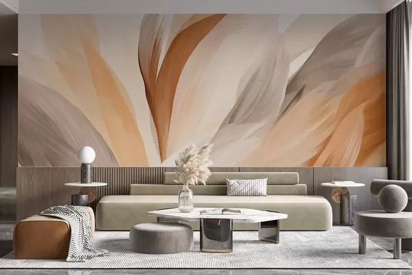 Murais de parede Penas abstratas texturizadas em marrom, branco e cinza e vários tons, sobrepostas em um fundo branco Nr. w09531
