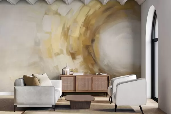 Murais de parede Imitação de pintura abstrata com pinceladas circulares texturizadas em amarelo e branco, criando uma sensação de movimento Nr. w09558